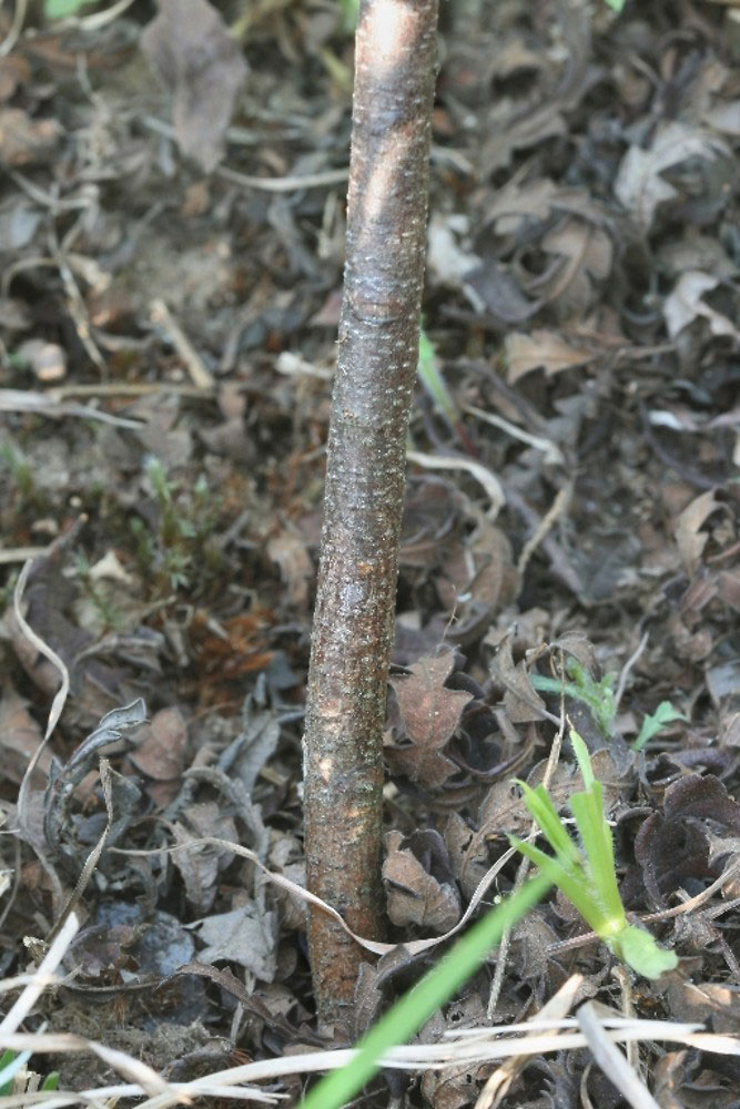 Twigs are very fine, brown to reddish or purplish, gland dotted, hairy with a few scattered lenticels (pores). Stems are much branched above, the tips lacking a terminal bud. Lower stems are up to around 1/3 inch diameter with smooth, reddish-brown to gray bark.