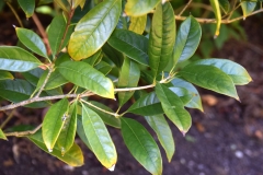 | Leaf | Simple, lanceolate to elliptical in shape about 5 to 10 cm long and 2.5 to 5 cm wide, smooth and entire margins. They have a glossy or shiny texture on the upper surface. The lower surface is usually a lighter green and may be less glossy |