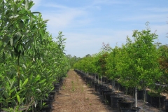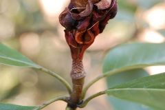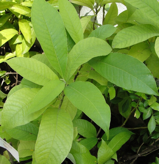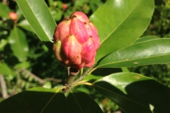 Sweetbay is an evergreen to semi-green and wide columnar tree which is ideal for use as patio tree or specimen. The tree reaches to 40 feet height in the north or to 60 feet in the south. The leaves are whitish to green. The shrub lives over 50 years. The slender and hairy twigs or gray/light brown bark has scales which are pressed together. When crushed, the bark is aromatic. Leaves are simple, alternate, toothless, oblong, slightly leathery and about 4-6 in (10-15 cm) long and 1-3 in (3-8 cm) wide. Leaves are lustrous above and pubescent below. Petiole is ½ in long. Flowers are creamy to white; lemon scented that blooms from June through September. Flowers are monoecious, spoon shaped which forms on stalks. The flowers are pollinated by beetles. Fruit is a dry, hairy, cylindrical about 5 cm long carpels. Follicles contain 1/4 in (0.6 cm) long bright and oval red seed. Seeds are attached to open pod by thin and elastic thread.