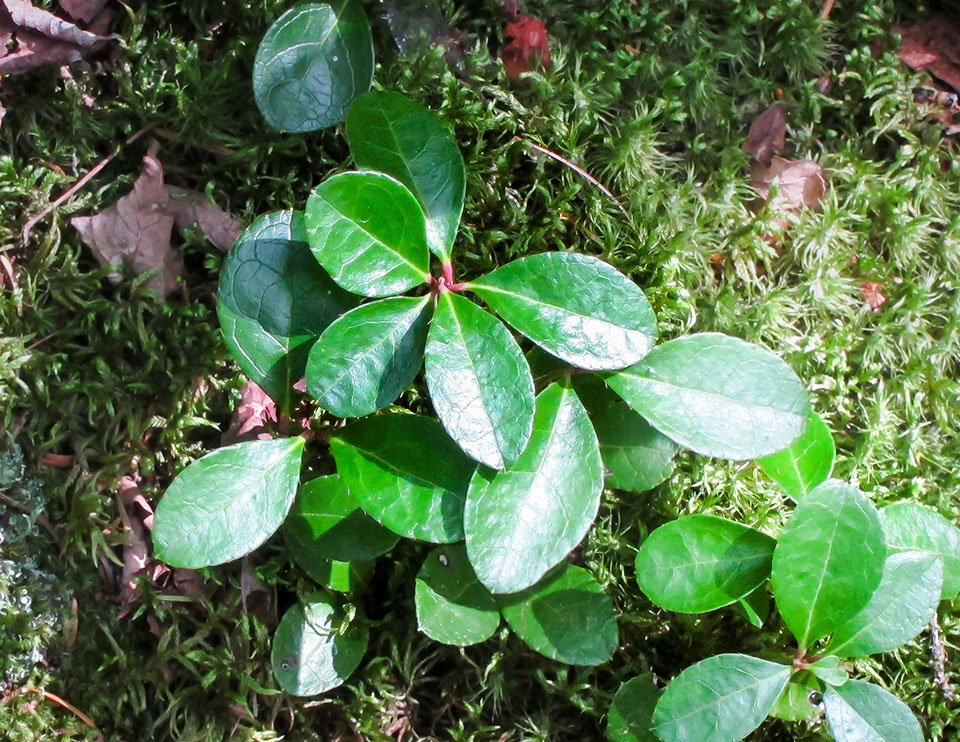 | Leaf | Evergreen, elliptic to ovate, 2–5 cm (3⁄4–2 in) long and 1–2 cm (1⁄2–3⁄4 in) broad, with a distinct oil of wintergreen scent |
