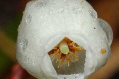 | Flower | About 1/3 inches (8 mm.) in length, consisting of a white bell-shaped corolla (sometimes tinted pink) with 5 short outwardly curled lobes, a white calyx with 5 ovate-oval lobes, 5 inserted stamens, and a pistil with a single stout style |
