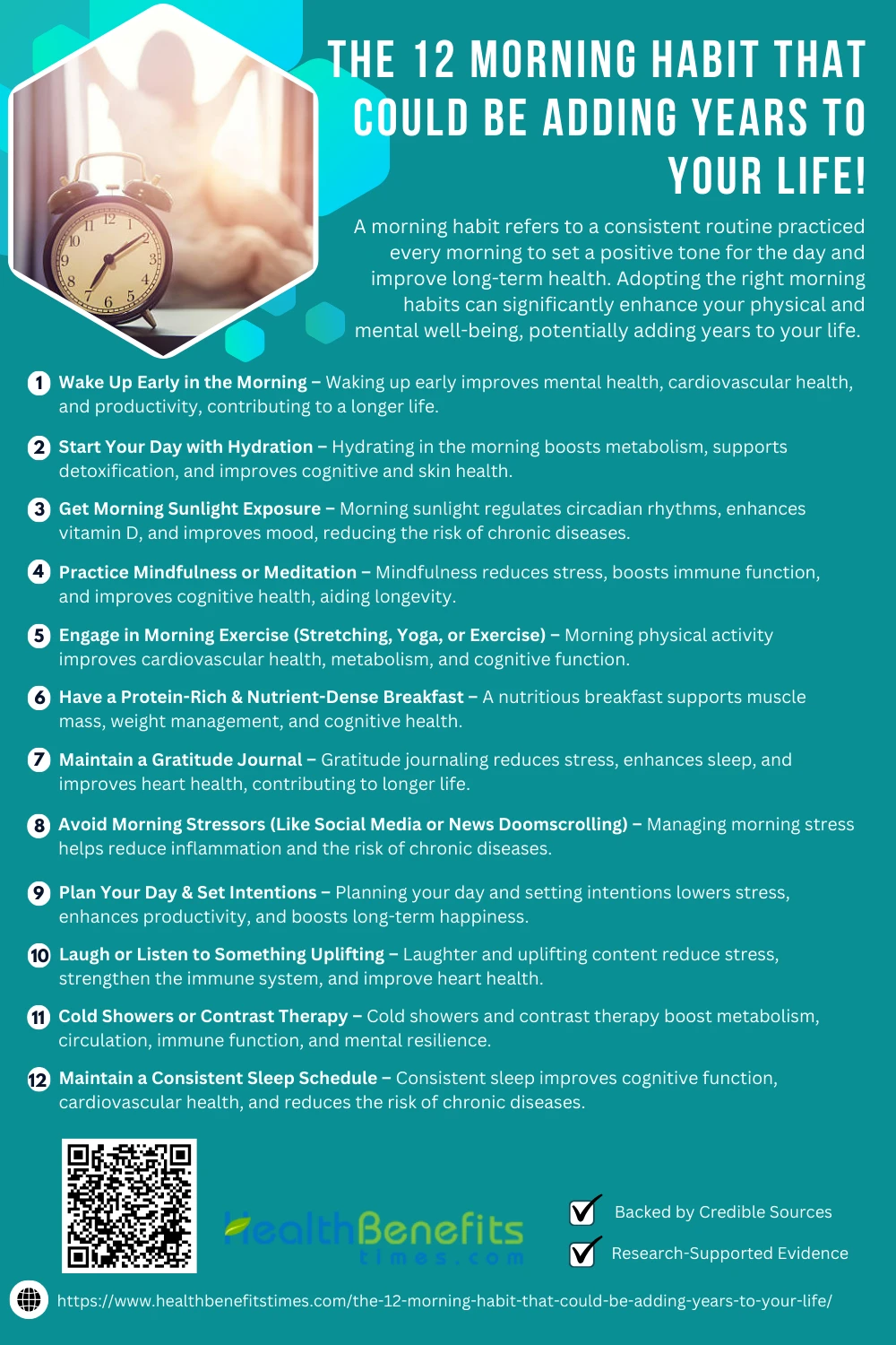 Your morning routine sets the tone for the rest of your day—and your life. These 12 science-backed morning habits can boost your health, energy, and longevity, potentially adding years to your lifespan.