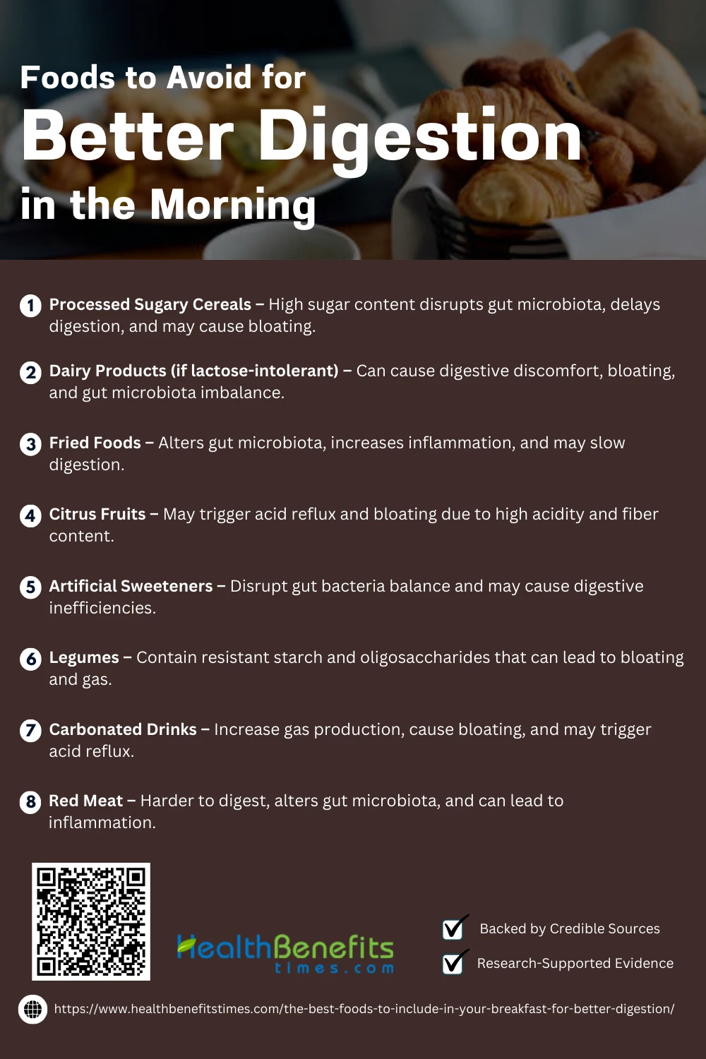 Certain foods can disrupt digestion, causing bloating, discomfort, and sluggishness. Avoiding processed sugars, greasy foods, excess caffeine, and lactose-heavy products can help maintain a healthy gut and smoother morning digestion.