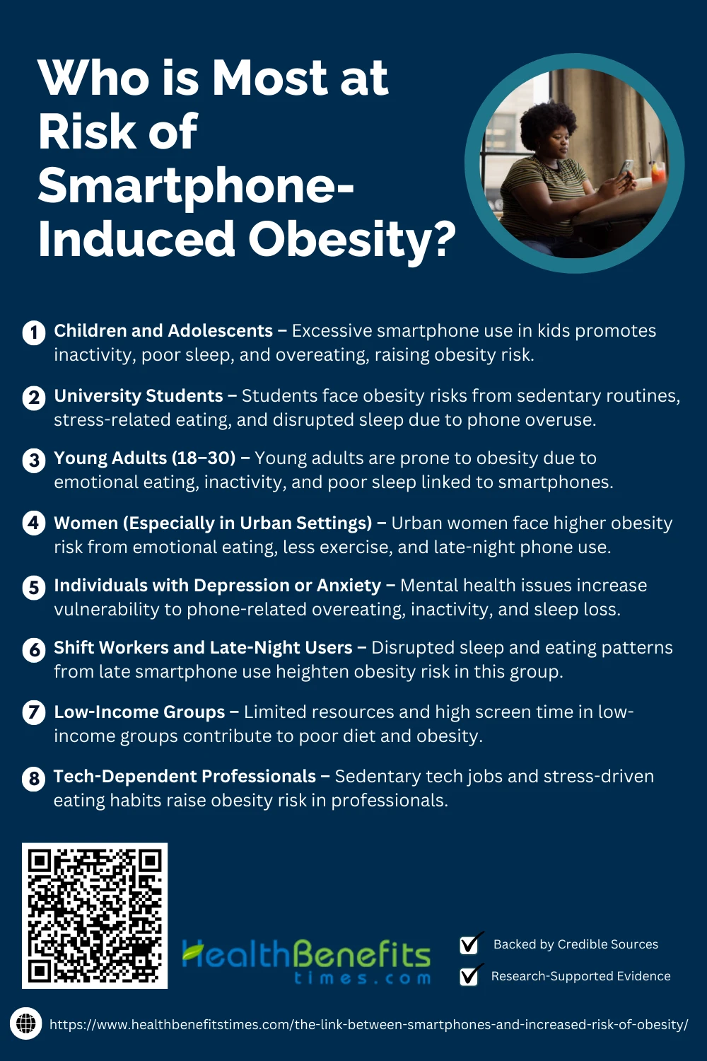 Certain groups are more vulnerable to smartphone-related obesity risks. Children, teens, and office workers often experience reduced activity, poor dietary habits, and sleep issues due to prolonged screen time and digital dependency.