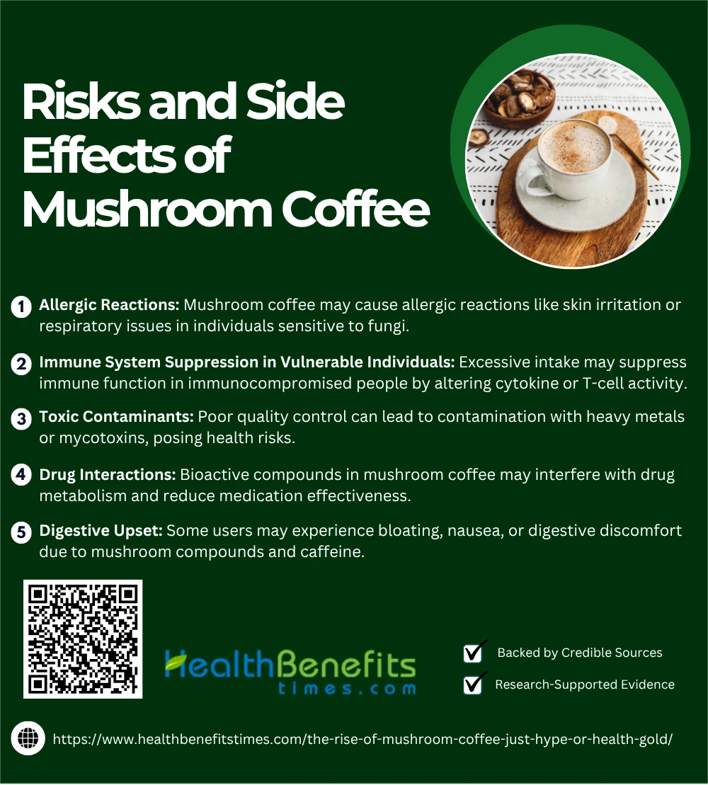 While mushroom coffee offers health benefits, it’s not without risks. Some individuals may experience allergic reactions, digestive discomfort, or potential interactions with medications, making caution essential before regular consumption.