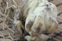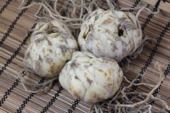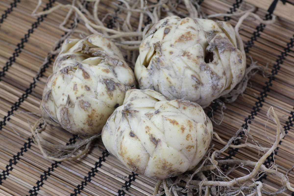 Bulbs are ovate to spherical, 4–8 cm across, scales broadly ovate, 2 cm long and wide and are unsegmented. Bulb is occasionally used as a vegetable, like a parsnip. It must be boiled as it can be quite toxic. Its bitterish taste is a lovely companion to stews and other thick dishes. It was grown as a root crop for many years on farms in Asia. The bulb is anti-inflammatory and used as a diuretic in some instances. They are used in Korea to treat coughs, sore throats, and heart palpitations.