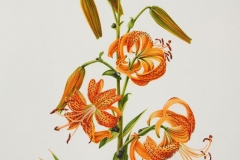 | Flower | Showy, 3–6(−20) in a nodding raceme, to 12 cm across, subtended by leafy bracts, orange-red spotted purple black, perianth segments 6 funnel form, strongly reflexed, each with a vasal nectar-bearing gland; stamens 6, anthers versatile |