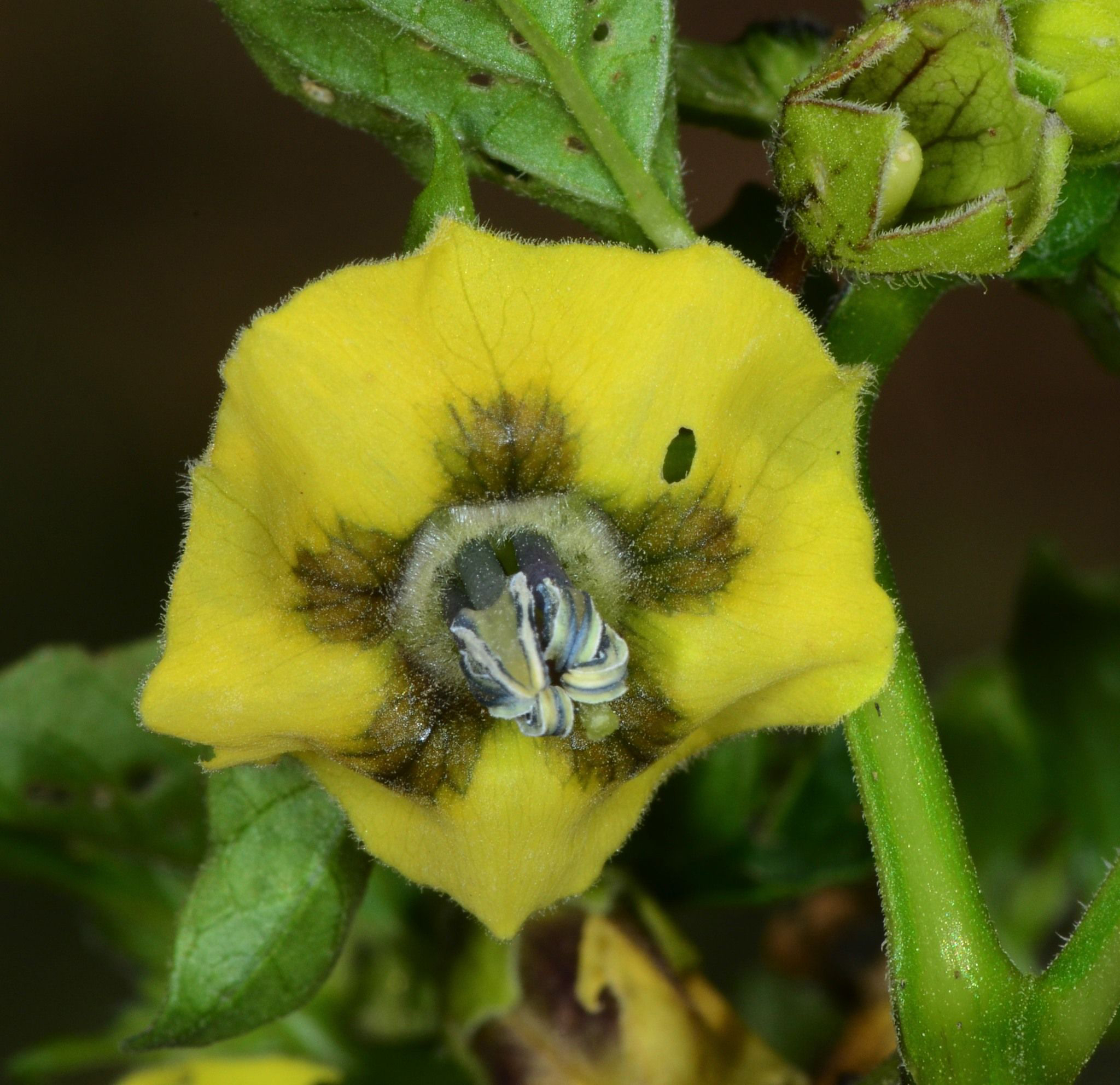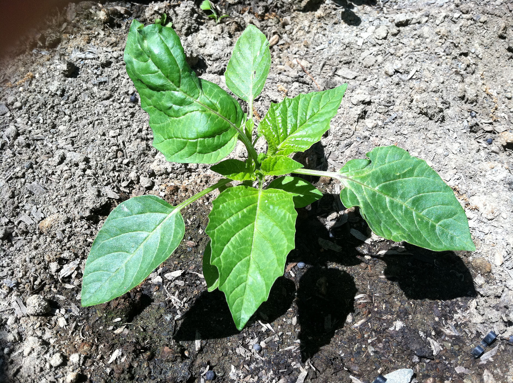 Tomatillo is a small annual glabrous shrub growing up to two to four feet in height. It prefers sunny locations for better production and is found growing in well drained, fertile soil that warms up quickly in the spring. Leaves are normally serrated and can either be smooth or pubescent. Flowers come in several colors including white, light green, bright yellow, and sometimes purple. Flowers may or may not have purple spots toward the center of the corolla.