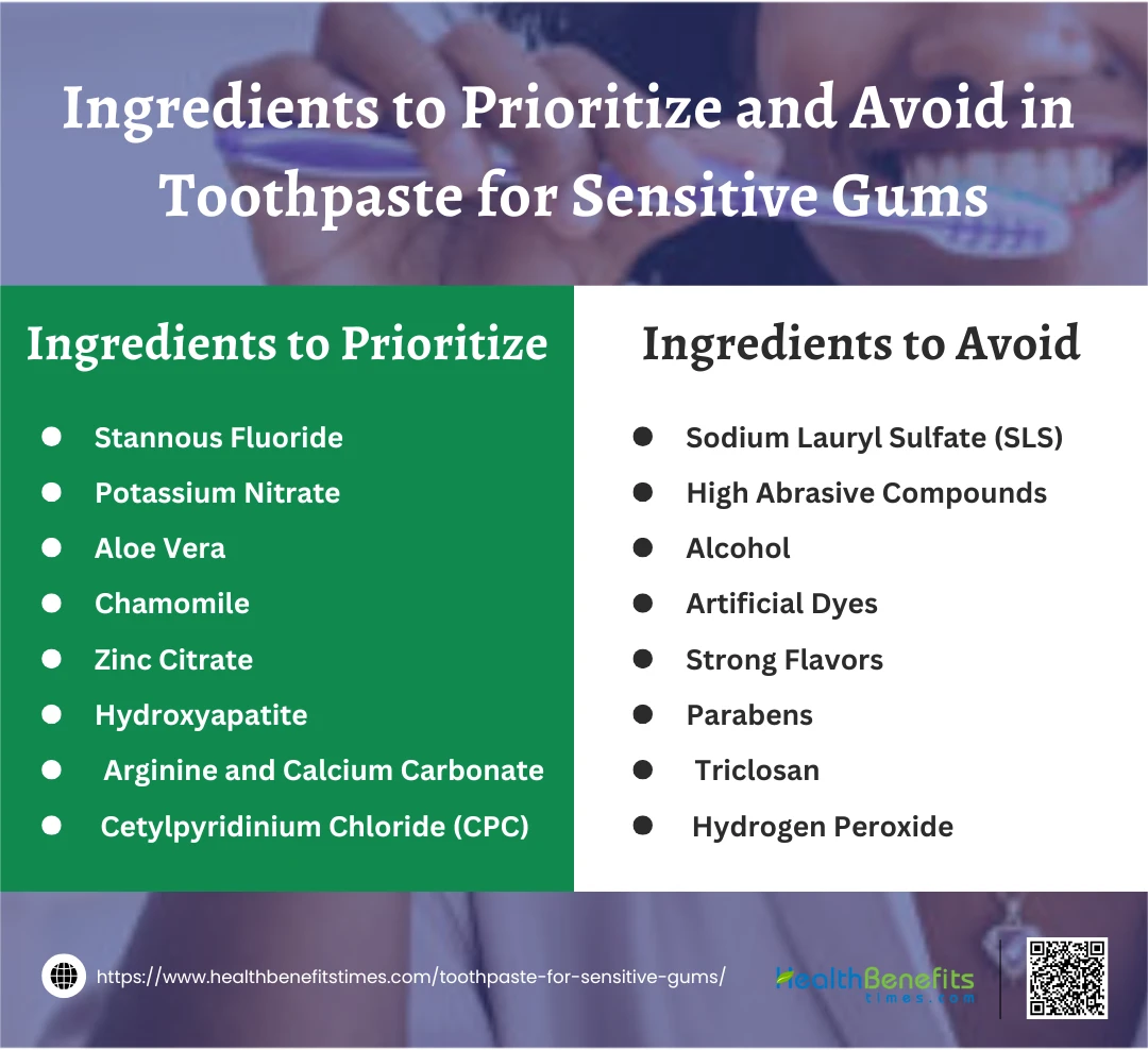 - Sodium Lauryl Sulfate (SLS): A common foaming agent that can irritate gums and cause dryness or inflammation.