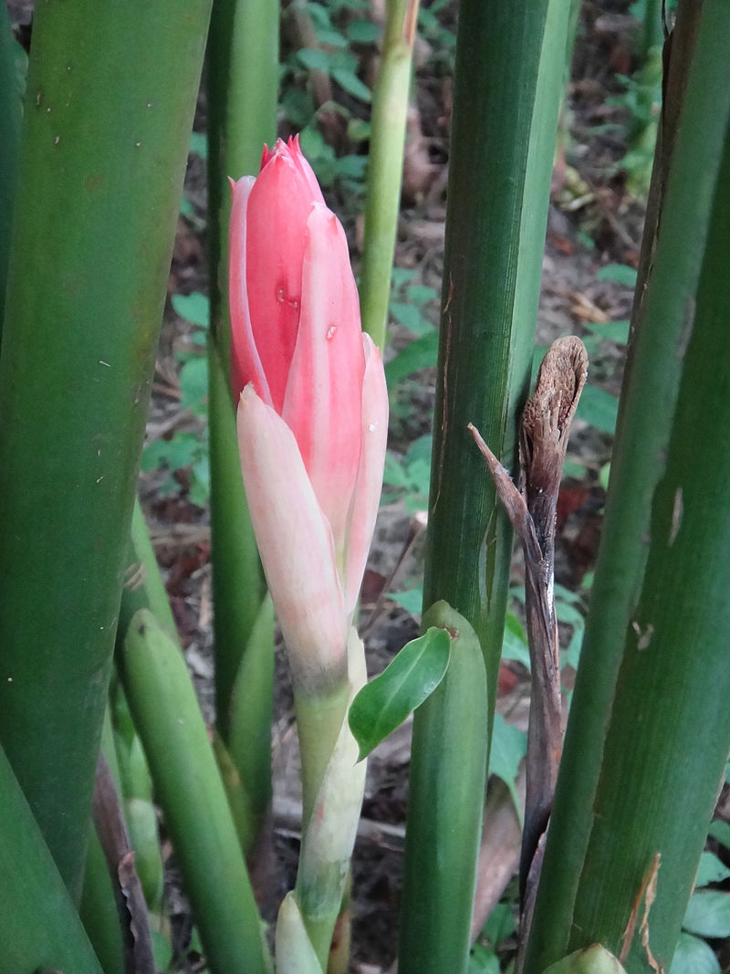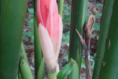Torch ginger is a large, erect, tropical, fast-growing, evergreen, rhizomatous perennial plant that grows in large clumps of erect, leafy stems up to 6 meters tall and flowering stems about 60 – 100 cm tall in tropical climates but much shorter in cooler climates. The plant is found growing in primary and secondary forest, forest edges, disturbed areas, and secondary vegetation near villages and along roadsides. The plant can tolerate a variety of soil types, the plants thrive in organically rich soil with sharp drainage. They prefer a slightly acidic to neutral soil pH. Rhizomes are stout (3-4 cm in diameter), strongly aromatic and found just below ground level. Stems are sometimes sliced into small pieces and added to curries and soups.