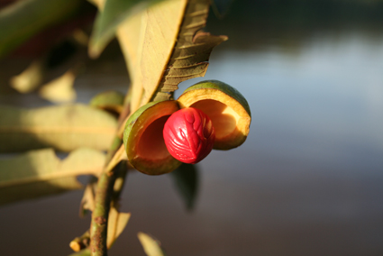 Ucuuba scientifically known as Virola surinamensis is a tall tree that produces a small red fruit. It is a native tree of the floodplains found throughout the Amazonian region, but it is found throughout Central and South America. The indigenous name of the tree means grease (ucu) and tree (yba). Apart from ucuuba it is also known as Baboonwood and Wild Nutmeg. It prefers flooded regions, and reaches a height of 25 to 35 m. A mature tree can produce between 30 to 50 kg of seeds per year. The seeds are so rich in fats that butter extract yields can reach 50% per kilo of seeds (dry weight).