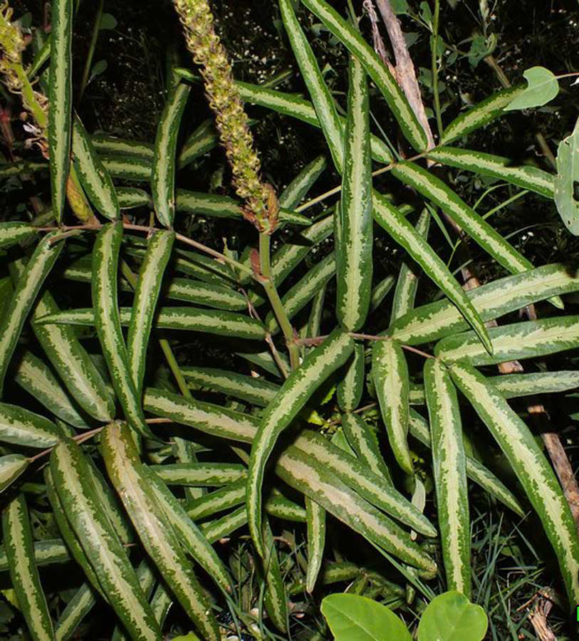 Uraria picta is an annual woody erect herb that reaches 1 to 2.5 m height. The stems are woody at the base. Leaves are pinnately compound with 2-5 pairs of leaflets. During vegetative phase, leaves pairs occur without terminal leaflet. Leaflets of the lower leaf are ovate and measures 2-8 cm long and 2-3 cm broad and of upper leaves is 7-25 cm, 5-25 mm broad and ovate-lanceolate. Flowers are 35 to 75 in number on inflorescence (10-70 cm long on 0-5 cm long stalk) axis usually pink or purple on dense spike like racemes which is more than 1.5 feet long. Racemes are elongated and terminal. Bracts are suprepersistent at the base and apex. Fruit consists of 2 to 6 seeds and segments are nearly separated. Fruits are glabrous, articulated and gray in color. Seeds are light brown, oblong and about 2.5 X 1.5 mm. It is widely distributed in Maharashtra ranging from Western Ghats occur only at Kalakdara. It is found in India, China, Nepal and Northern Australia. Besides India, Uraria picta is reported from various parts of Africa (Nigeria, Ethiopia, Egypt, Congo and South Africa), Japan, China, Bangladesh, Bhutan, Pakistan, Nepal and Australia. The species is becoming rare due to overexploitation by various pharmaceutical industries and local tribes.