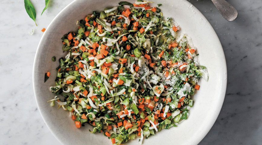 When the rice is ready, add Vietnamese coriander leaves and plenty of freshly cracked black pepper to the shredded chicken and onion. Gently toss to combine.