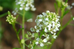 | Flower | Each flower has 4 white petals and 4 green sepals, and is less than 1/8 inches (3 mm.) across. A typical raceme will have a few flowers in bloom at the top. The flowers have no noticeable scent |