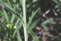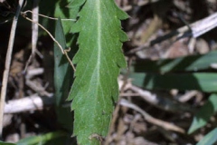 | Leaf | Cauline leaves are up to 3½” long and ¾” across, and usually oblanceolate or obovate. They are sessile at the base (appearing to have winged petioles), and the larger leaves have a few coarse teeth toward their tips |