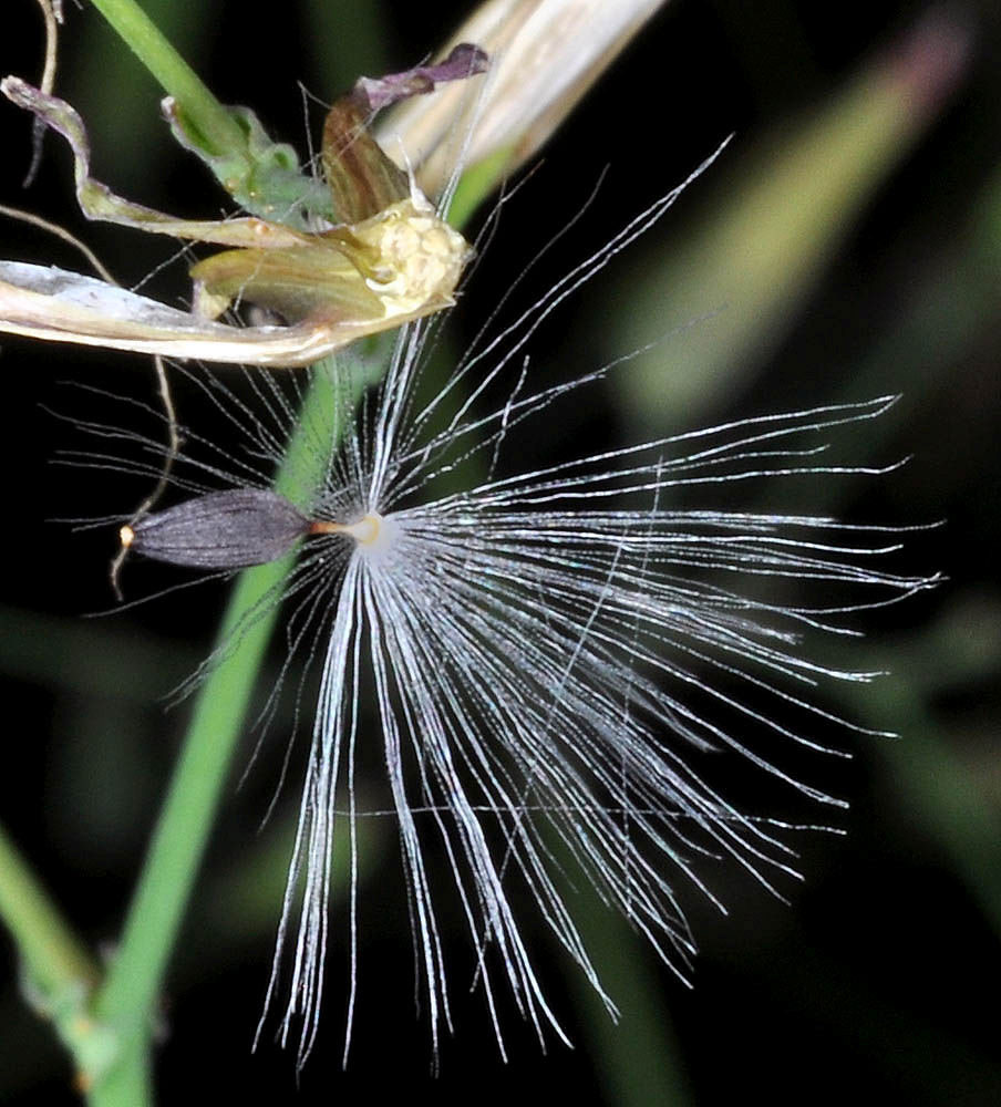 Fertile flowers are followed by short beaked, spindle shaped, achene’s that are approximately 0.13 in. (0.33 cm) long, several-nerved, and black or brown. The papas have simple white hairs, the inner longer than the outer that may disperse seeds long distances by wind.