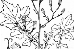 | Stem | Erect, 2-3 ft. (0.6-0.9 m) tall, branched above and may one or more stems from a fibrous root. The stem surface is glabrous, often glaucous, and exudes milky juice when broken. |