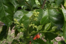 It is an evergreen shrub or small tree which is cultivated as an ornamental plant and for its edible fruits. The fruits are pale yellow or brownish yellow which are available during May to July. The barks are rough and grey brown. The flowers are pentamerous and sweet-scented which are available in the Late March. The varieties of Wampee include: Niu Shen, Yuan Chung, Yeh Sheng, Suan Tsao, Hsiao Chi Hsien, Chi Hsin and Kua Pan. It prefers subtropical to tropical climate and does well in rich, well-drained and loamy soils.