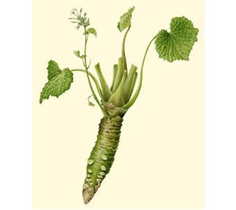 • Wasabi rhizome is a pungent warming herb that is used internally as an antidote to fish poison.