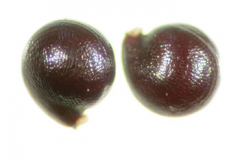 Fertile flowers are followed by egg-shaped capsules, flattened, 1.5 mm long dehiscent by 3 valves usually with black, round seeds, 0.7-1.2 mm long, with numerous small projections, appendage round or flat.