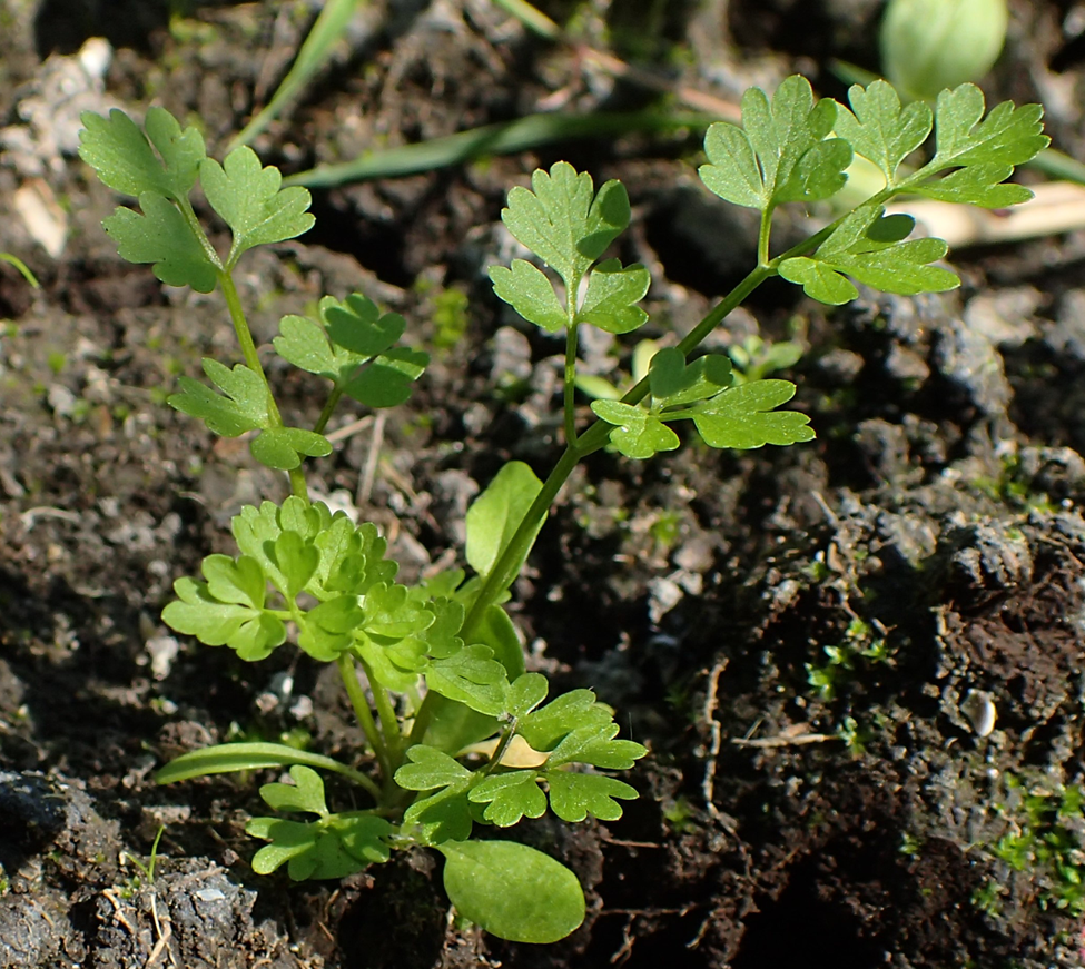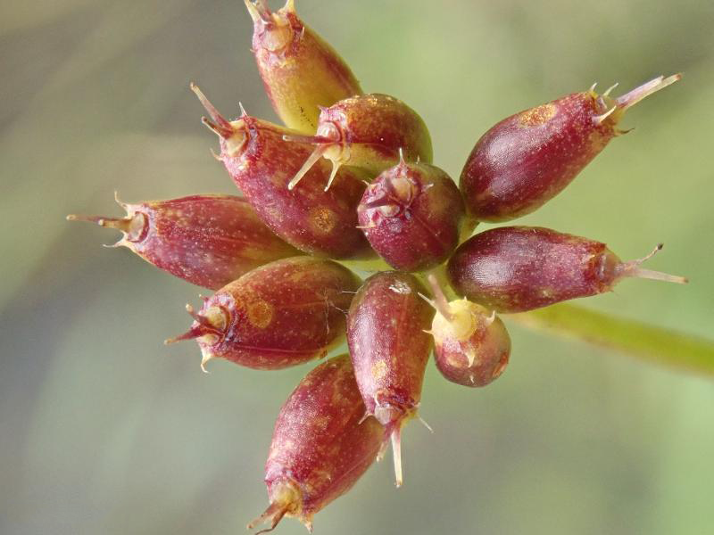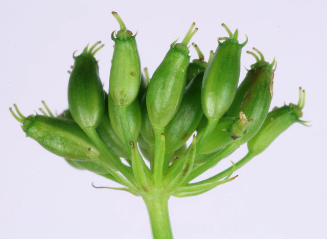 Fertile flowers are followed by fruits that are 3–5.5 mm long, ovoid, with prominent ridges. On maturity, each fruit splits into two (1-seeded) mericarps. Normally fruit spreads by water or animals.