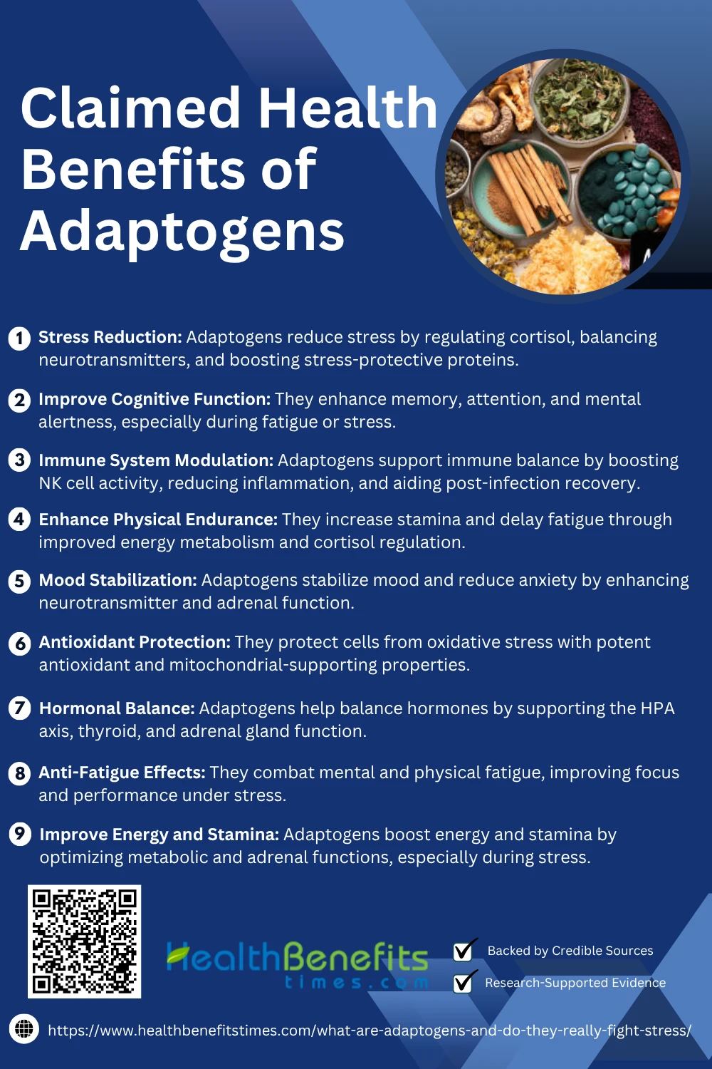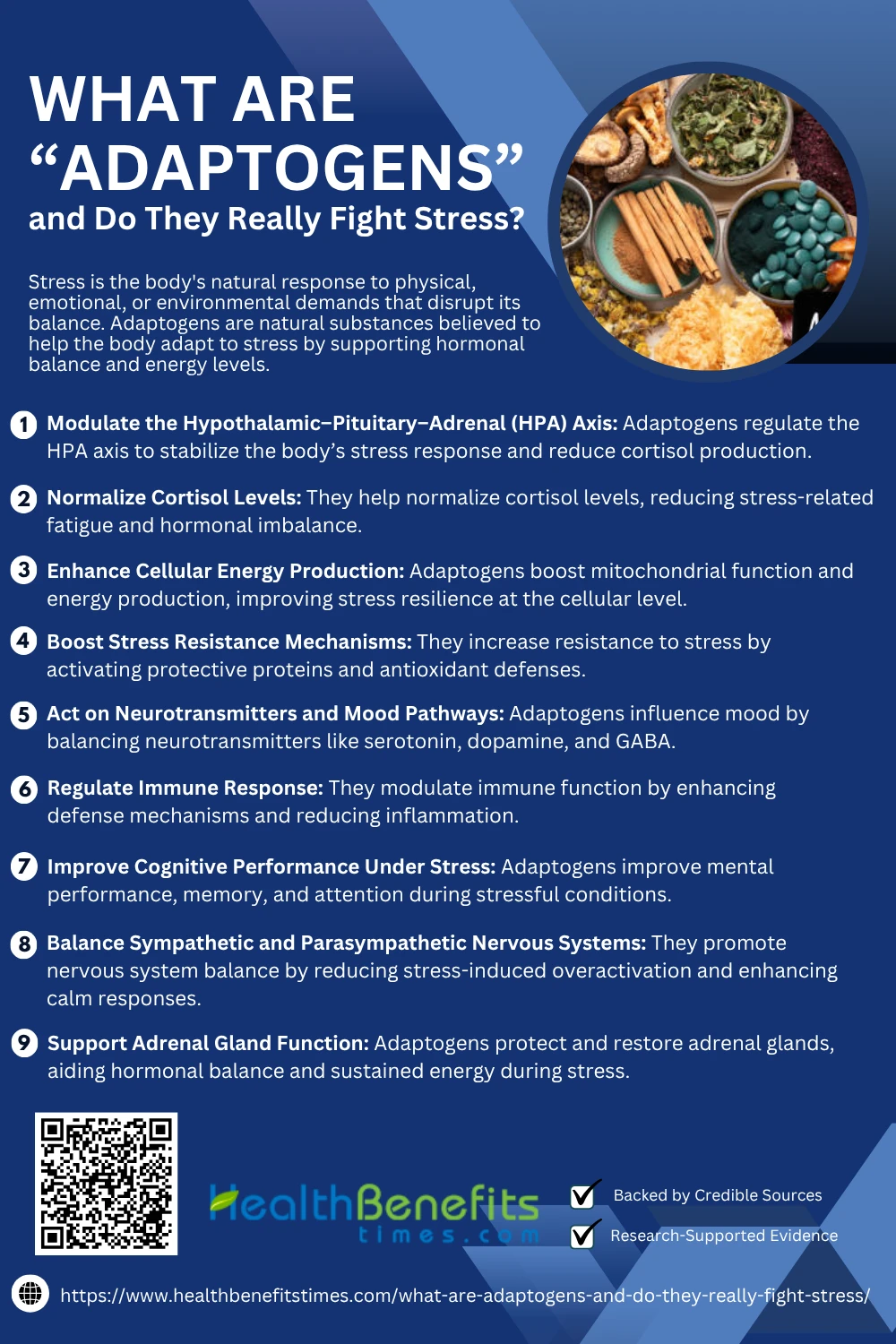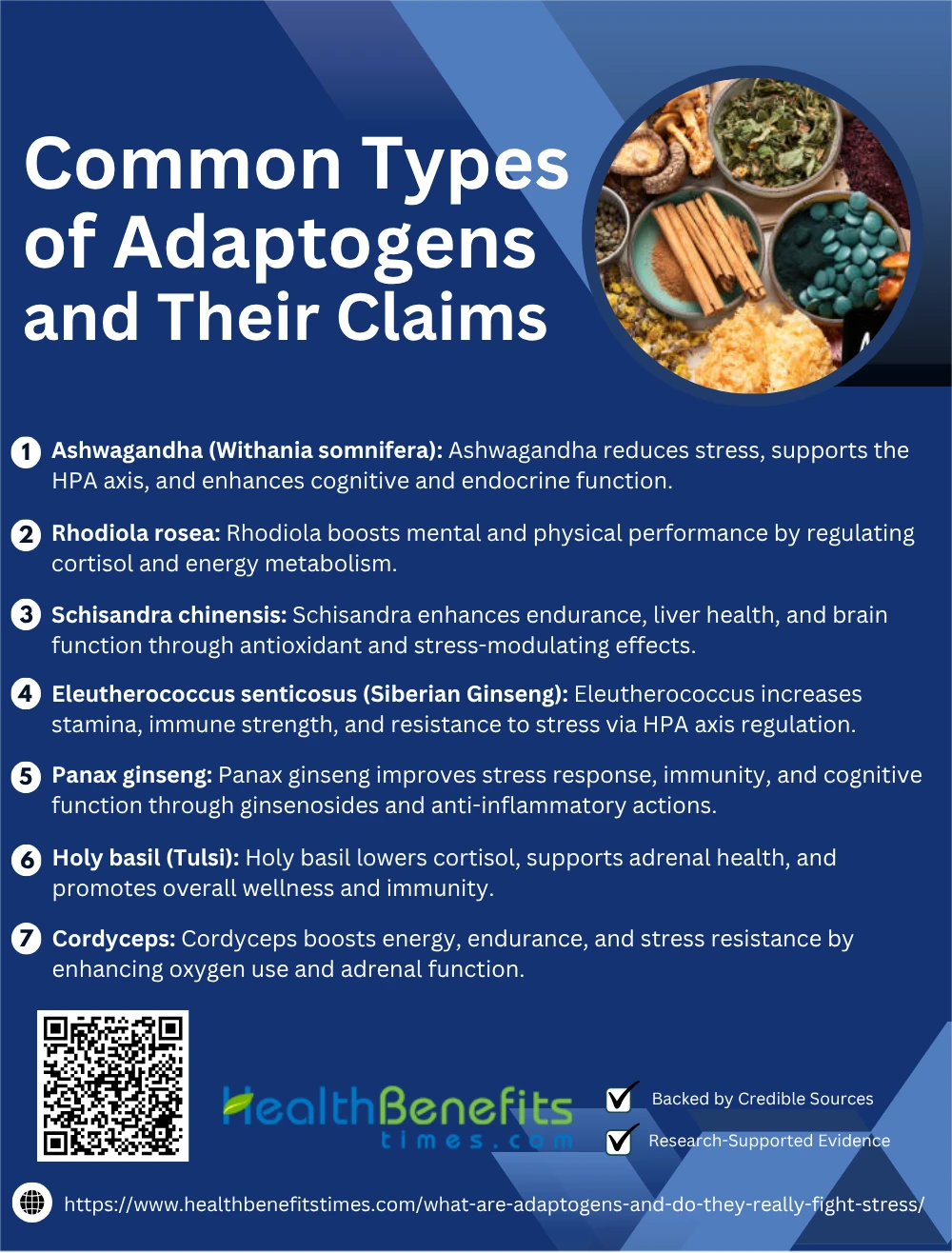 - This article explores how adaptogens work, the types commonly used, their claimed benefits, and whether science backs their stress-fighting reputation.