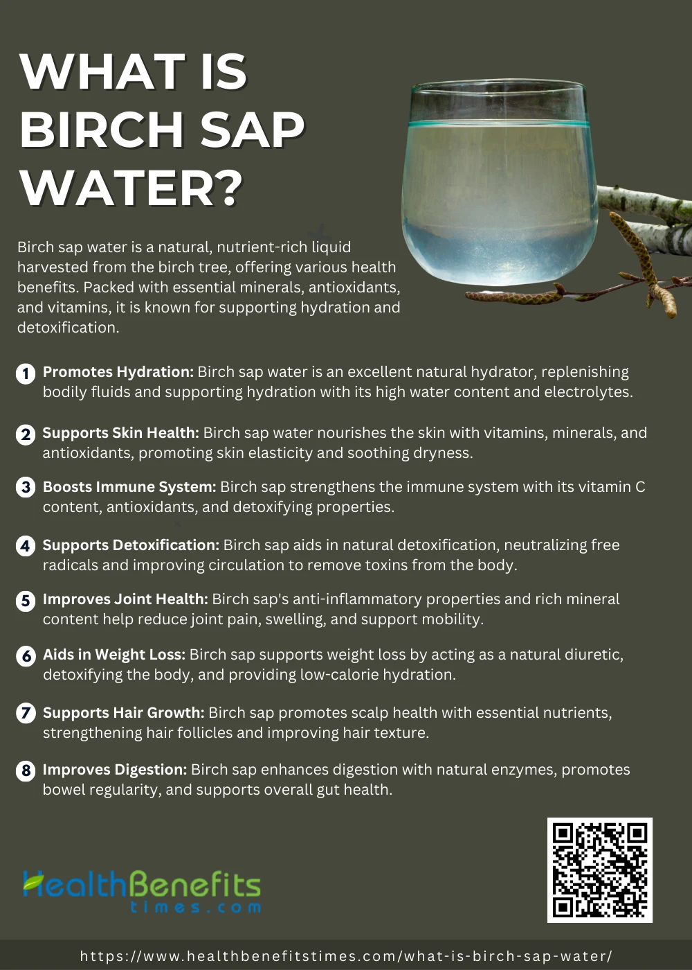 - Birch sap water is a natural, nutrient-rich liquid harvested from the birch tree, offering various health benefits.