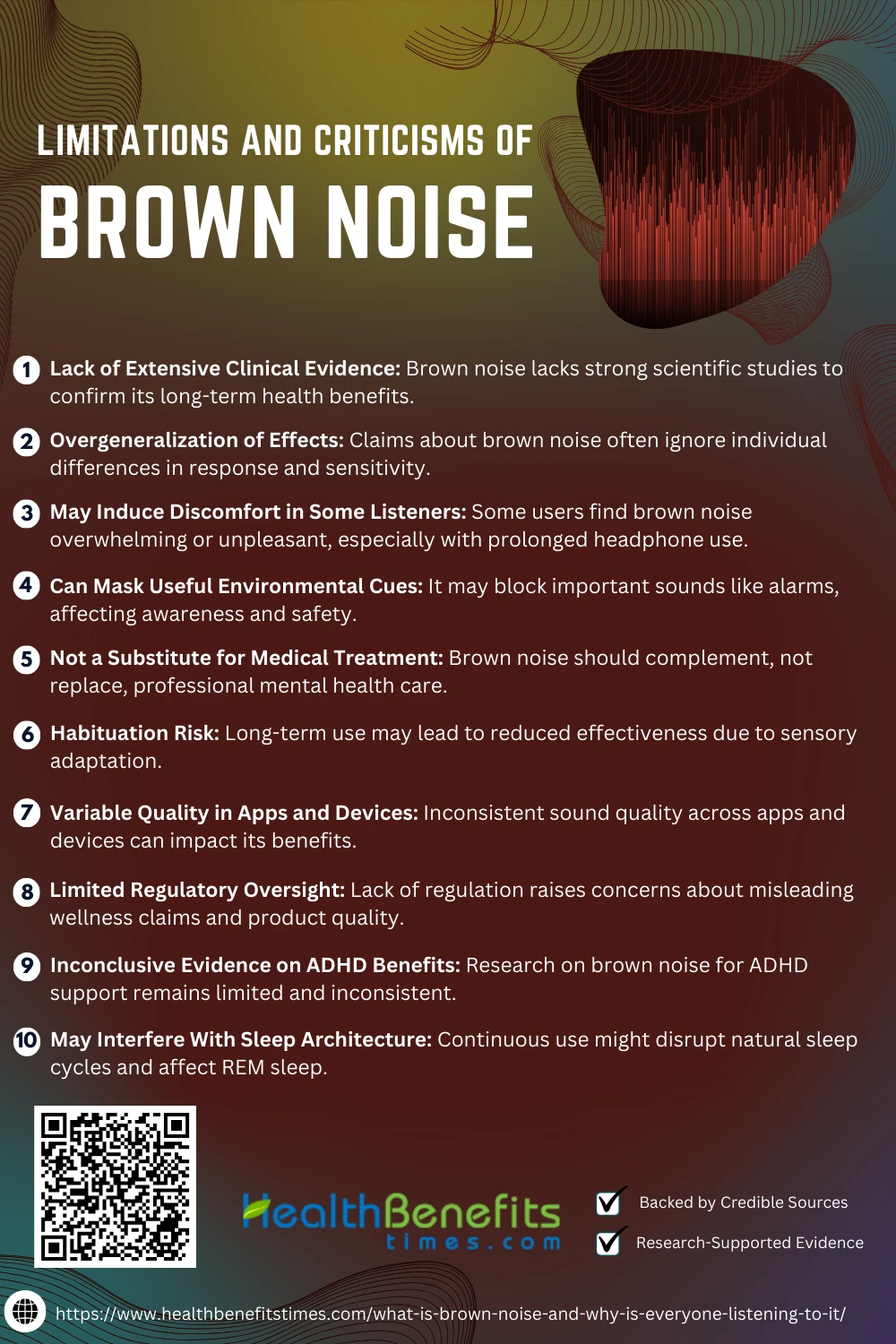 Despite its popularity, brown noise lacks extensive scientific validation. Some users report discomfort or ineffectiveness, and experts caution it may not work for everyone or replace professional mental health treatments.