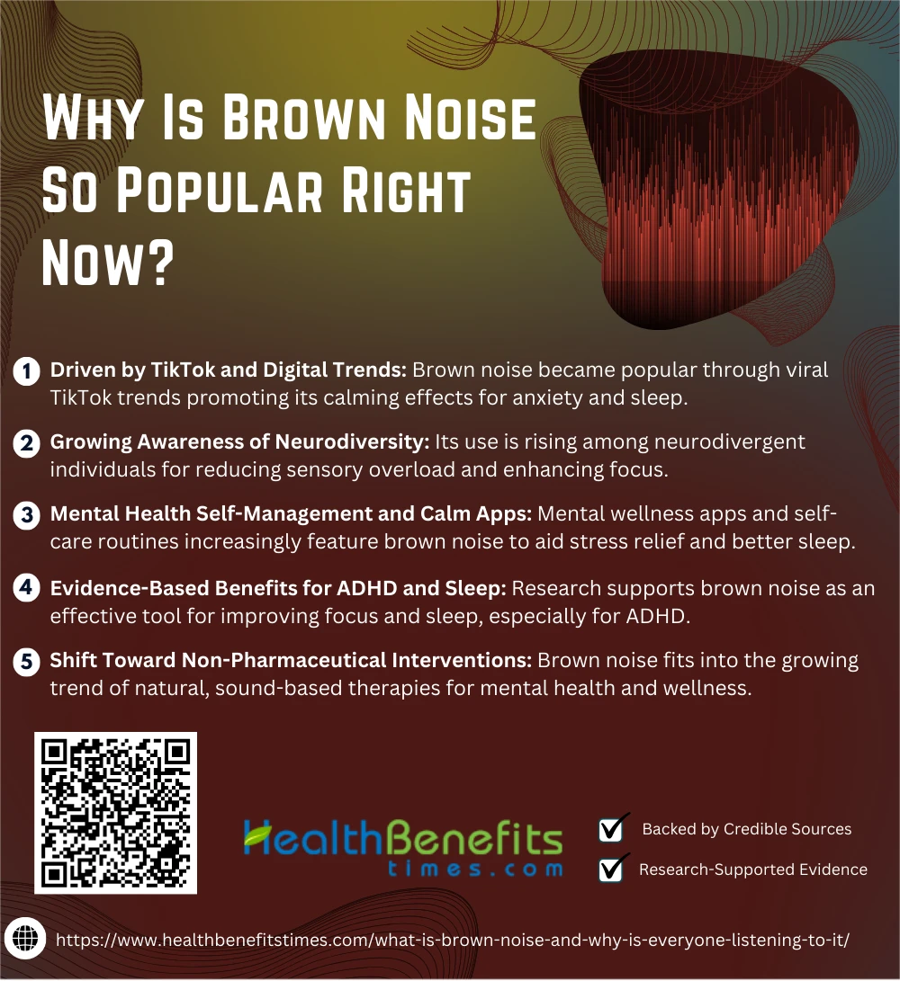 Brown noise is trending due to its calming, low-frequency tones that help people relax, focus, and sleep. Its popularity surged on social media, especially among those with anxiety or ADHD.