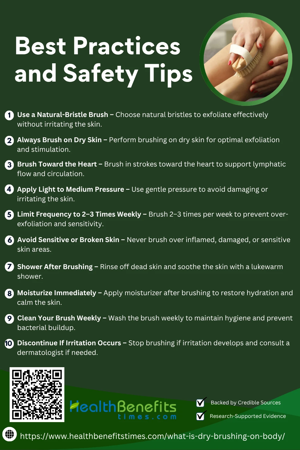 To get the most out of dry brushing, it’s important to follow best practices and safety tips that protect your skin, prevent irritation, and ensure a gentle, effective exfoliation experience.