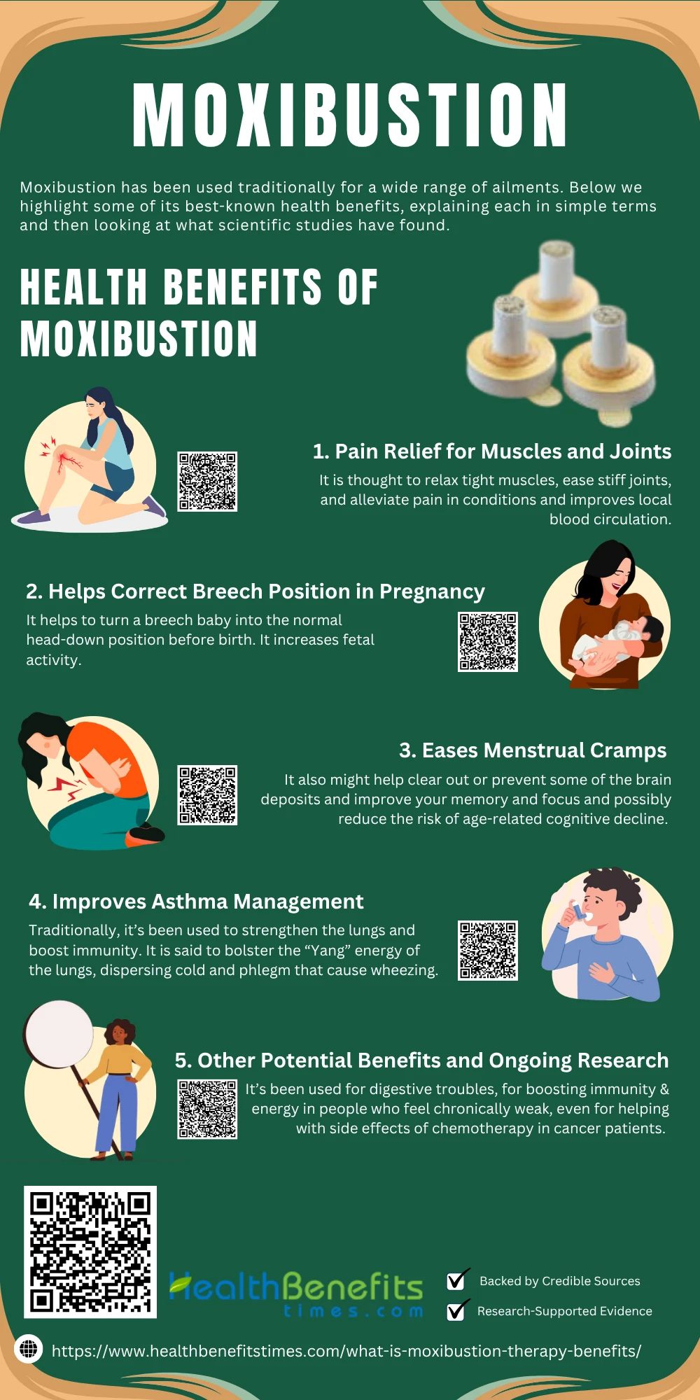 Moxibustion may be an ancient therapy, but it’s finding its place in modern wellness as a gentle, natural way to support health. By harnessing the power of heat from the humble mugwort plant, this practice aims to boost circulation, relieve pain, and balance bodily functions. We’ve seen that for several issues – from pain relief to turning breech babies, from easing menstrual cramps to aiding asthma – moxibustion offers notable benefits that are increasingly backed by scientific research. Of course, it’s not a magic cure-all, and more rigorous studies are needed, especially for its wider applications. (20✔) But the emerging evidence is encouraging and helps validate why moxibustion has stood the test of time in traditional medicine.