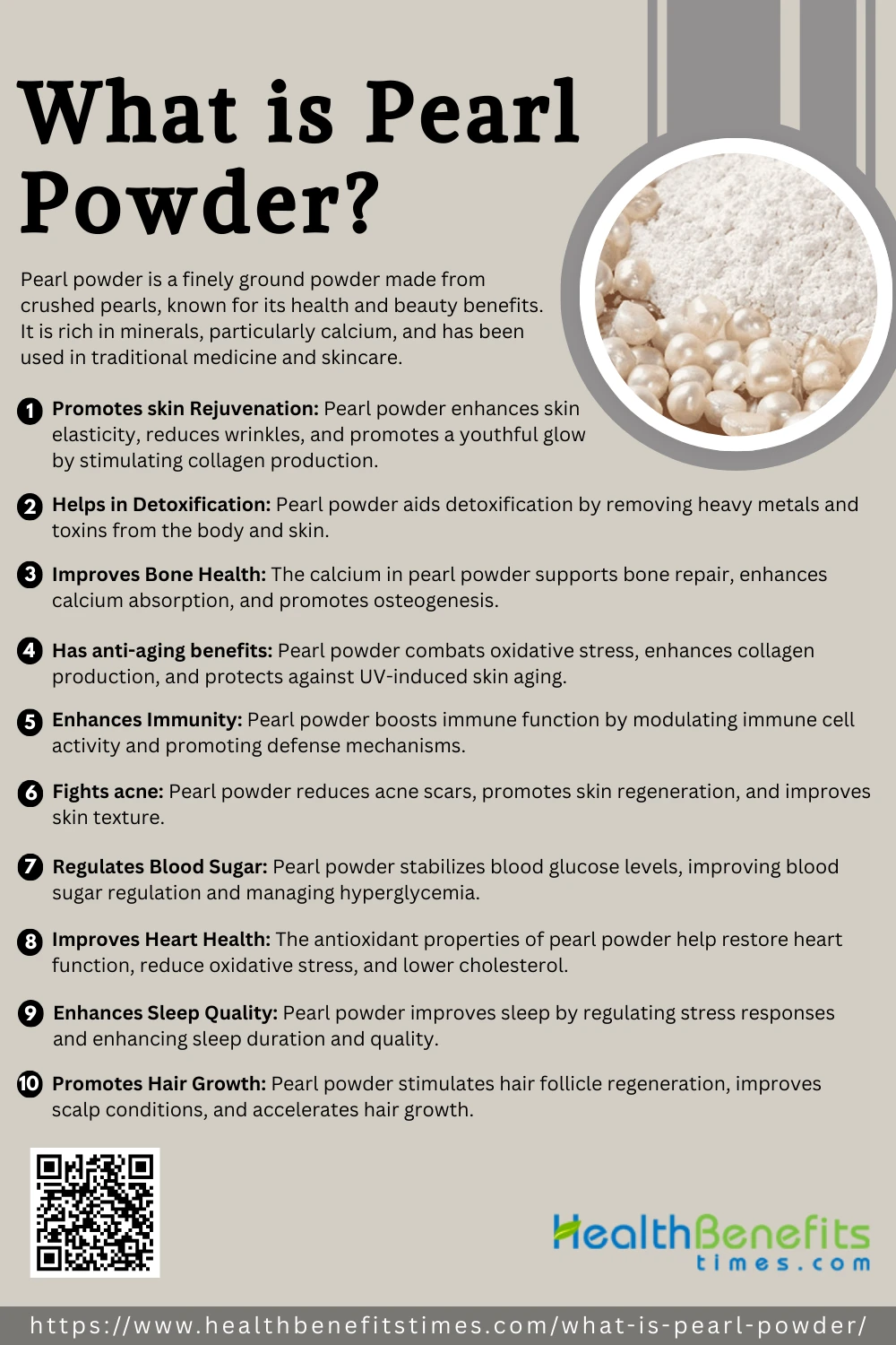 - Pearl powder is a finely ground powder made from crushed pearls, known for its health and beauty benefits.