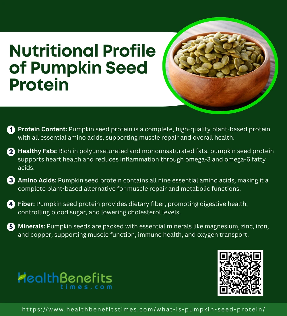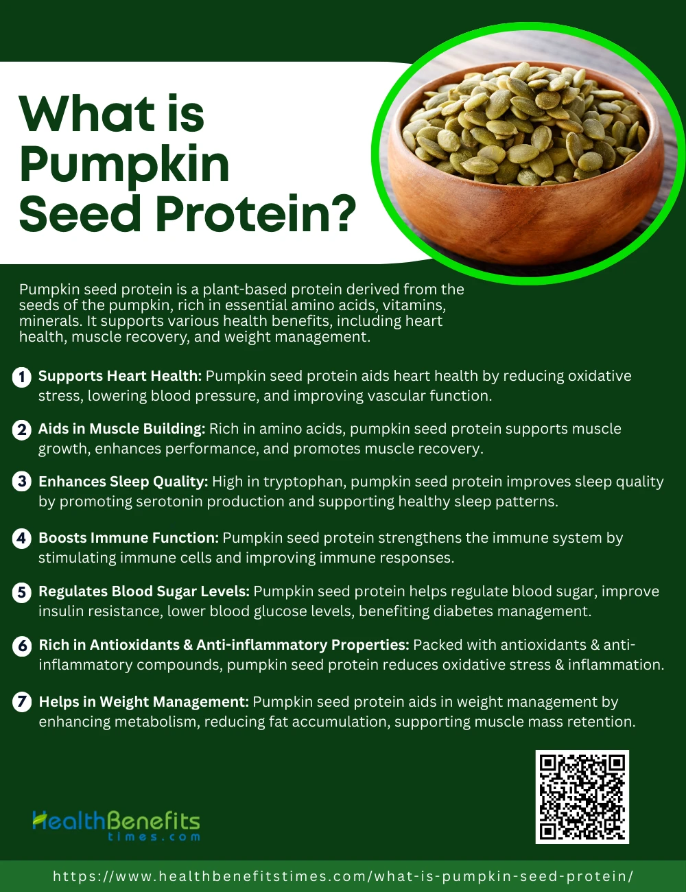 Pumpkin seed protein offers a range of health benefits, from supporting heart health and muscle recovery to providing antioxidants. Its anti-inflammatory properties make it a valuable addition to a balanced diet.