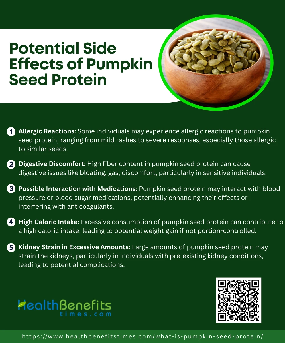 Diving into the less-discussed aspects of pumpkin seed protein, some users may experience mild digestive upset such as stomach discomfort, diarrhea, or nausea when large amounts are consumed, likely due to its high fiber and protein content interacting with gut sensitivity (1)(2). (18) (19) In rare cases, bioactive compounds including polyphenols and flavonoids can trigger itching, rash, or other allergic reactions, especially in individuals with seed or nut sensitivities (1)(4). (18) (20) Excessive intake of pumpkin seed protein isolate, which is rich in essential amino acids like lysine and leucine, could place extra strain on kidney function if fluid intake is inadequate, although typical dietary levels are generally safe (2)(5). (19) (21) Caution is advised for those taking lithium, as certain pumpkin seed constituents may slow the body’s elimination of the drug, potentially increasing side effects (1)(3). (18) (22) Pregnant or breastfeeding individuals should stick to food amounts rather than supplements, since there is insufficient evidence on safety at medicinal doses (1)(4). (18) (20) Overall, while pumpkin seed protein delivers valuable nutrients—such as iron, magnesium, and zinc that support muscle and immune health—being mindful of these potential side effects helps ensure a balanced and comfortable experience (2)(5). (19)(21)