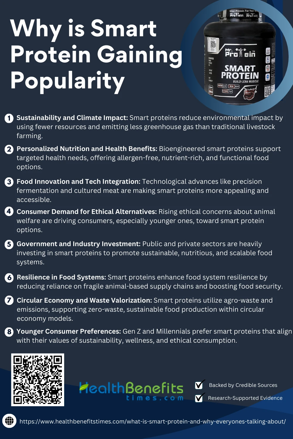 Smart protein is gaining popularity due to growing health awareness, environmental concerns, ethical considerations, and technological advancements. Consumers and industries alike are embracing it as a sustainable and nutritious protein alternative.