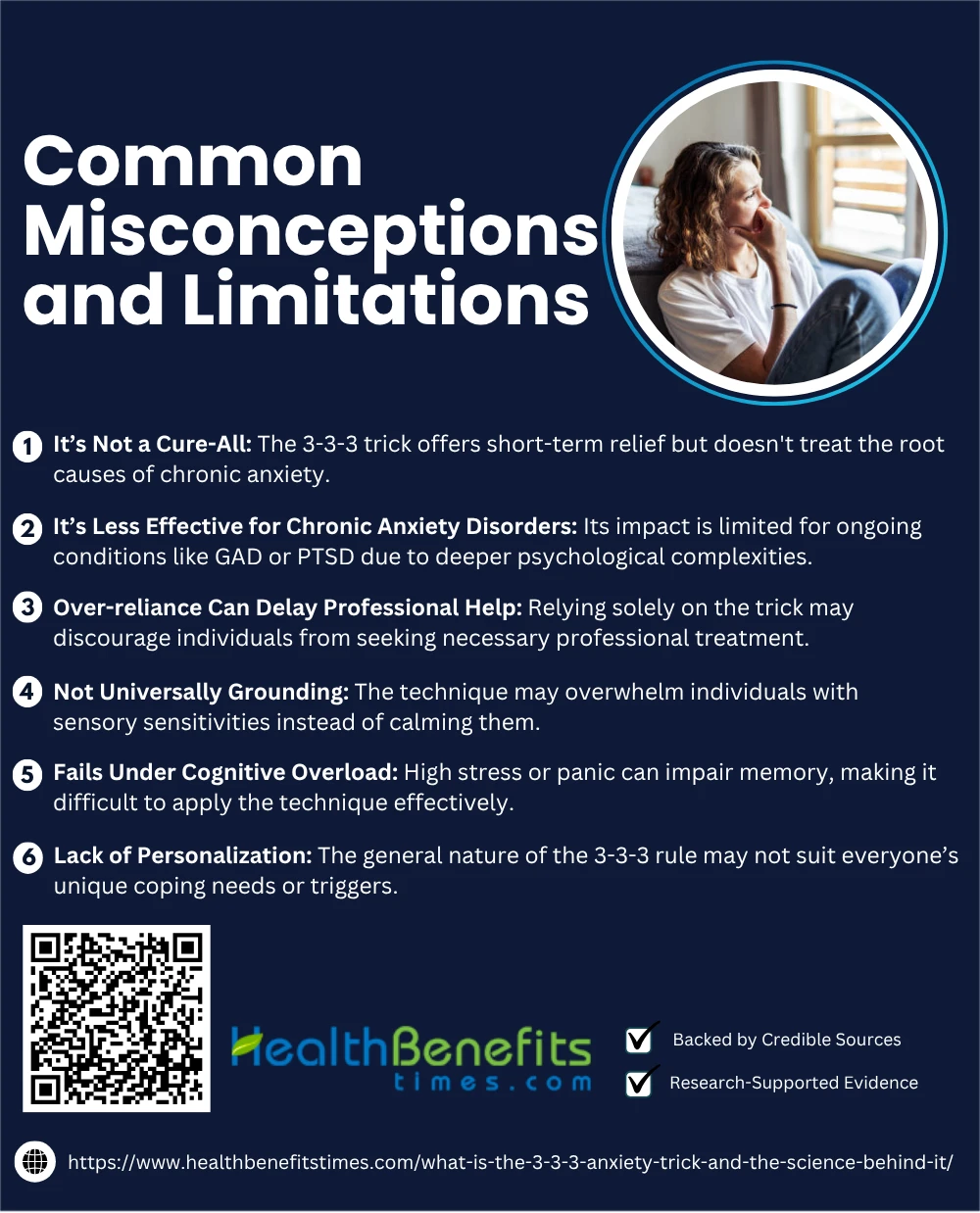 While the 3-3-3 anxiety trick is helpful, it’s not a cure-all. Understanding its limitations and common misconceptions ensures realistic expectations and encourages seeking professional help when necessary.