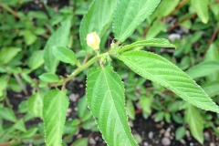 White Jute is an erect, annual to perennial plant that grows about two or more meters in height, unbranched or with only a few side branches. The plant is found growing in low-lying watery places, among field hedges or along the border of cultivated fields, degraded forest areas and along sides of water courses. The stems are usually purplish. The leaves are ovate-lanceolate 5-12 cm long, pointed at the tip and rounded at the base, with tail-like projections on each side of the midrib, and toothed at the margins. The flowers are borne in small groups in the axils of the leaves, and are about 4 mm long. The sepals are often purplish and the petals are yellow. The many seeded globose to globose-obovoid capsules is about 1 centimeter in diameter, with longitudinal ridges. This species produces the greatest part of the jute of commerce, being about ten times as abundant as Corchorus olitorius. It is cultivated in India, and is also grown for its fiber in the Yangtze Valley of China.