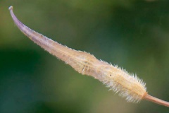 | Shapes | Many-seeded, densely stiff-haired, 3-veined, 2-4 cm long siliqua terminated by a flat, slightly curved, seedless beak |