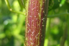 | Stem | Ribbed, branched, bristly, with hairs pointing downward, usually only branching in upper part |