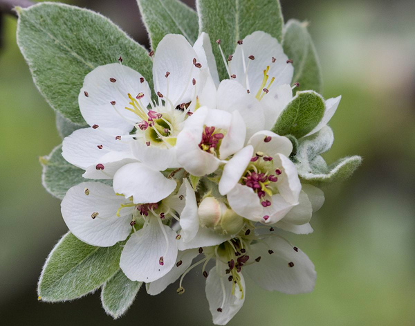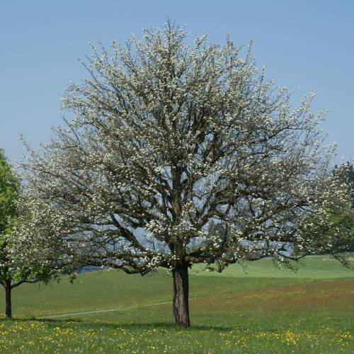 White Pear is a small, deciduous tree growing up to 5–8 m tall and is found growing in sunny location. Normally it prefers well-drained, loamy soils. It is often cultivated on slopes. It has stout hairy branchlets. Leaves are alternate on 2.5–3 cm long petioles, lamina ovate or elliptic-ovate, 5–11 × 3.5–6 cm, both surfaces tomentose when young, soon glabrescent, base obtuse to broadly cuneate, margin spinulose-serrate, apex acuminate. Flowers are white, floccose, glabrescent, 2–3.5 cm in diameter, pedicels 1.5–3 cm long, hypanthium cupular, slightly pubescent, sepals caducous, glabrous, petals white, ovate, 1.2–1.4 × 1–1.2 cm, base shortly clawed, apex rounded.