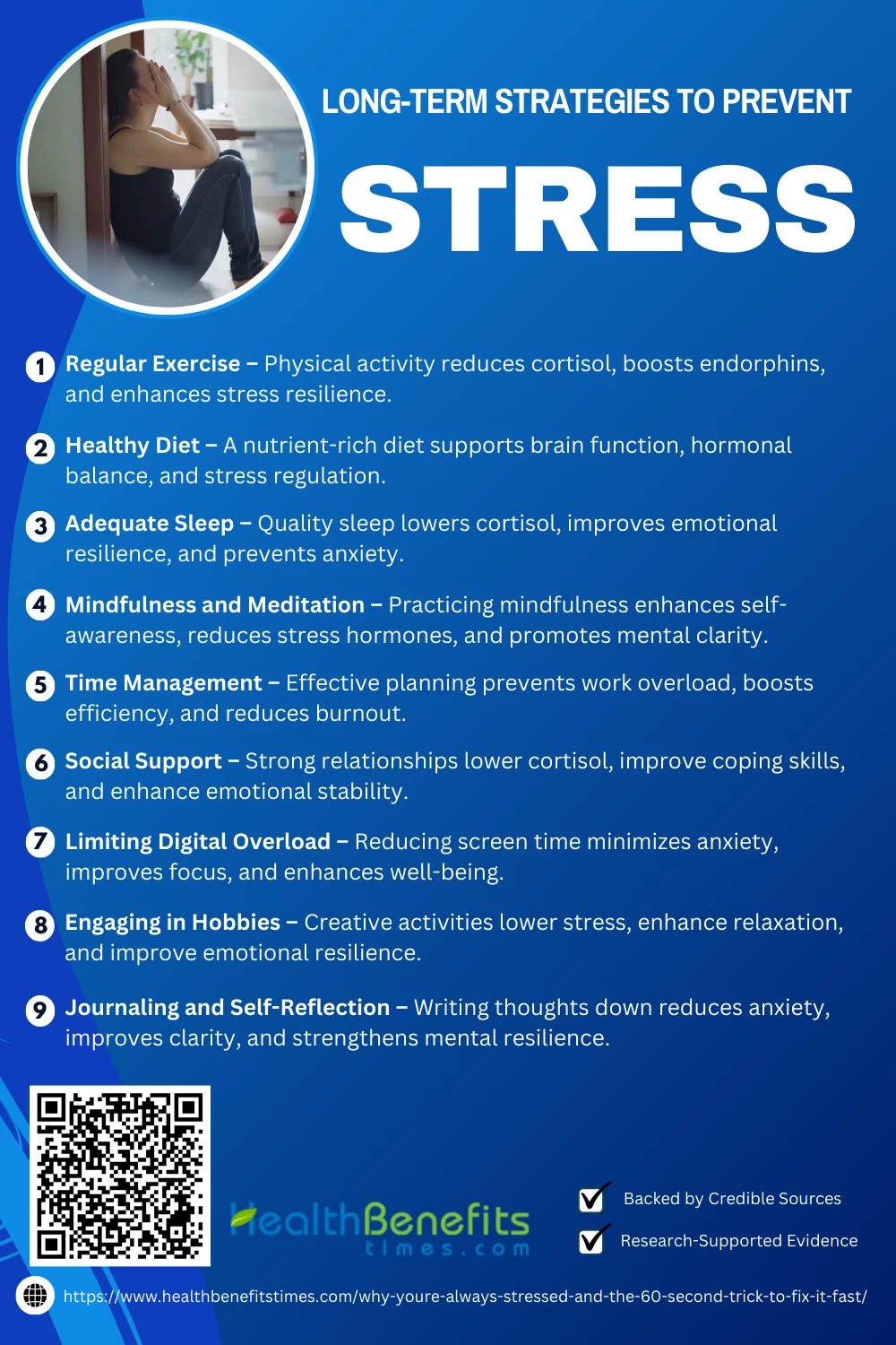 Preventing stress requires long-term strategies like mindfulness, regular exercise, healthy sleep, and time management. These habits help build resilience, reduce anxiety, and create a balanced, stress-free lifestyle over time.