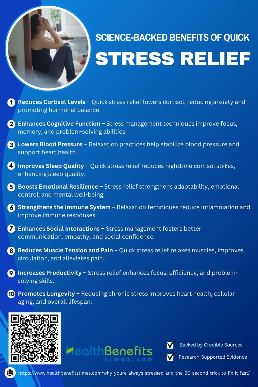 Quick stress relief isn’t just convenient—it’s scientifically proven to improve mental clarity, lower cortisol levels, enhance mood, and support overall health, making it essential for long-term well-being and resilience.