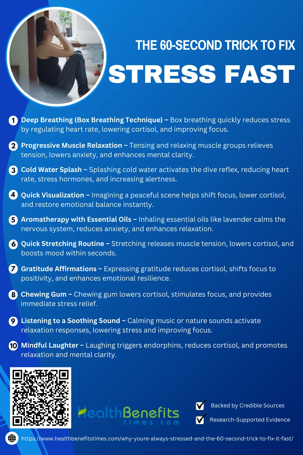 When stress hits, you need a quick and effective solution. This simple 60-second trick activates your body’s relaxation response, helping you regain calm, lower anxiety, and restore focus almost instantly.