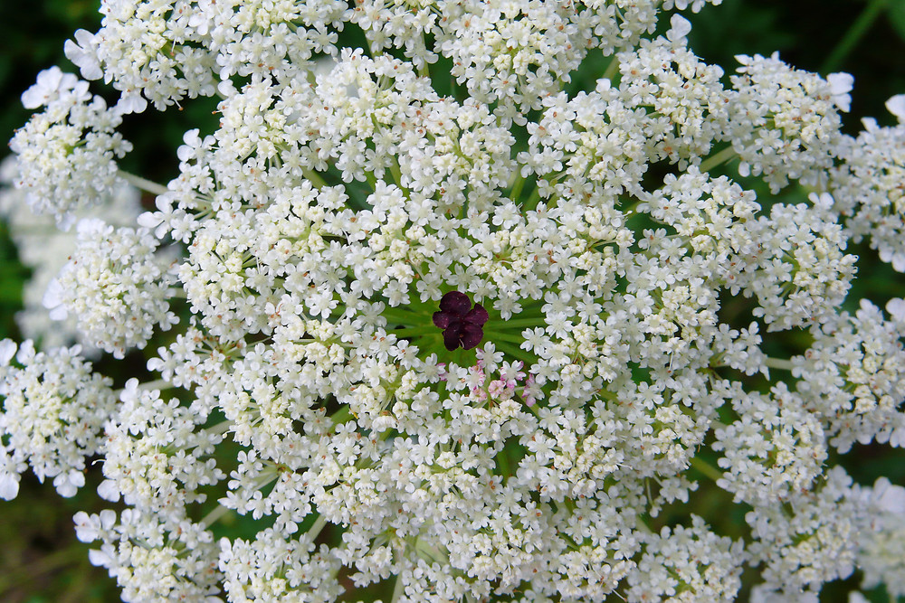 Daucus carota, whose common names include wild carrot, Queen-Anne’s lace, Bees’ Nest, Bird’s Nest, Carrot, Carotte, Carrot, Yarkuki, Zanahoria Wild Carrot, Birds Nest Weed, Devils Plague, Garden Carrot, Bee’s nest plant and Bird’s nest root is a flowering plant and is a member of the carrot family (Apiaceae), which includes parsnip, parsley, fennel and angelica. The herb is native to temperate regions of Europe, southwest Asia and naturalized to North America and Australia. It is quite similar in appearance to the deadly poison hemlock; D. carota is distinguished by a mix of tri-pinnate leaves, fine hairs on its solid green stems and on its leaves, a root that smells like carrots, and occasionally a single dark red flower in the center of the umbel.