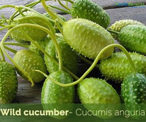 Cucumis anguria, commonly known as Wild cucumber, cackrey, maroon cucumber, West Indian gherkin, and West Indian gourd, is a vine belonging to Cucumis L. (melon) genus and Cucurbitaceae (Cucumber family). The plant is native to Africa and occurs from the woodlands of Angola and Zimbabwe to Namibia, Botswana and South Africa. It is similar and related to the common cucumber (C. sativus) and its cultivars are known as gherkins. It is an important cucurbit vegetable and conventional medicinal crop. Few of the popular common names of the plant are Gherkin, cackrey, maroon cucumber, West Indian gherkin, West Indian gourd, Bur cucumber, Cassongo, Chikanyanga, Chikopa, Chipokolo, Goareberry gourd, Ingolowe, Jerusalem cucumber, Kasongwe, Muchacha, Muhawa, Prickly fruited gherkin, West Indian gourd, Burr gherkin, Jerusalem cucumber, Wild cucumber and wild spiny cucumber.