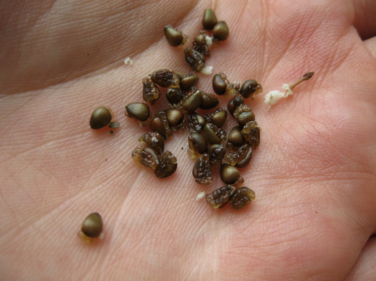 Fertile flowers are followed by a 6-celled fleshy seed capsule. The capsule consists of numerous dark brown, somewhat 3-sided hard seeds. While plants can be started from seed, it takes a while. For germination, seeds need a cold moist storage period of 60 to 90 days, then a warm moist period of the same length followed by another cold period.