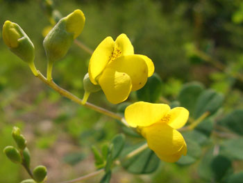 Flower Irregular in shape and are up to 1.5cm long (0.6 inches). They are yellow and borne in small, loose, terminal racemes. The calyx is 4 or 5-toothed. Petals 5, stamens 10, and distinct