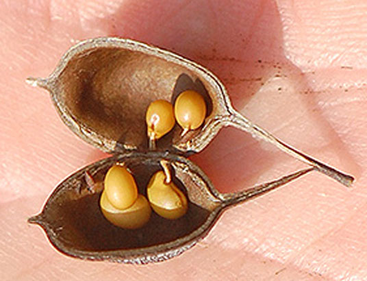 Fruit Shape & Size 2-3 cm long greatly distended, cylindrical pods with a leathery shell