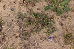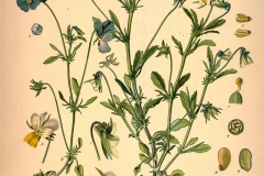 Wild pansy, a small creeping or ramping plant which reaches 15 cm high with flowers 1.5 cm in diameter. It is found in short grassland on farms as well as wastelands on acid and neutral soils. Usually it is found in partial shade. Roots are rhizome type with fine rootlets. Stem is hairless, downy and branched. It has no leaf rosette at the base, not like some other violets such as Viola hirta. Stipules are developed, palm-lined or palmatised. Flowers are lateral and solitary uphold on long peduncles. It is found on aerial stems having more or less long internodes. Sepals are 10-25 mm long. Corolla is found in blue, purple, white or blue in colour. Often it is found in two tones: yellow and purple. The plant is hermaphrodite, self-fertile i.e. pollinated by bees.