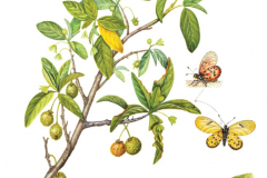 Kiggelaria africana also known as the wild peach or umKokoko is a large, robust, low-branching African tree, and is currently the only recognized species in the genus Kiggelaria. Despite its common name, Kiggelaria africana is not related to the more familiar fruit-producing peach tree (Prunus persica) although the leaves do look similar, if only very superficially. Unlike peach leaves, they are fairly thick and stiff, with a thin coating of fur on the undersides. The tree grows across Tanzania through Malawi, Zimbabwe and Mozambique to Swaziland, Lesotho and southern South Africa. It occurs naturally in Afromontane forests as well as by the coast, in bushveld and along rivers. Few of the popular common names of the plant are wild peach, umKokoko, Porkwood, Wildeperske, Mahogany, Pink wood, Red Ebony, Red Ivory, Red Ivory wood, Royal Redwood and Fatherland’s Redwood. Kiggelaria is actually named after Franz Kiggelaar who was the curator of the Simon Von Beaumonts garden in the Hague (1648 – 1722). africana from Africa. There is only one species in this genus in Southern Africa.